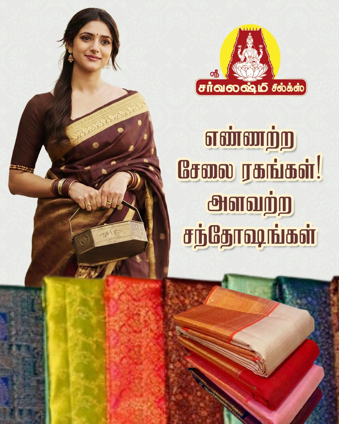 பிரகாசமான வானவில் வண்ணங்கள் மற்றும் சிறந்த வேலைப்பாடுகளுடன் கூடிய காஞ்சிபுரம் பட்டு சேலைகளின் அருமையான தொகுப்பு ஸ்ரீ சர்வலட்சுமி சில்க்ஸ் திருமணங்கள் மற்றும் விசேஷ நிகழ்வுகளுக்கு மிகவும் பொருத்தமானது